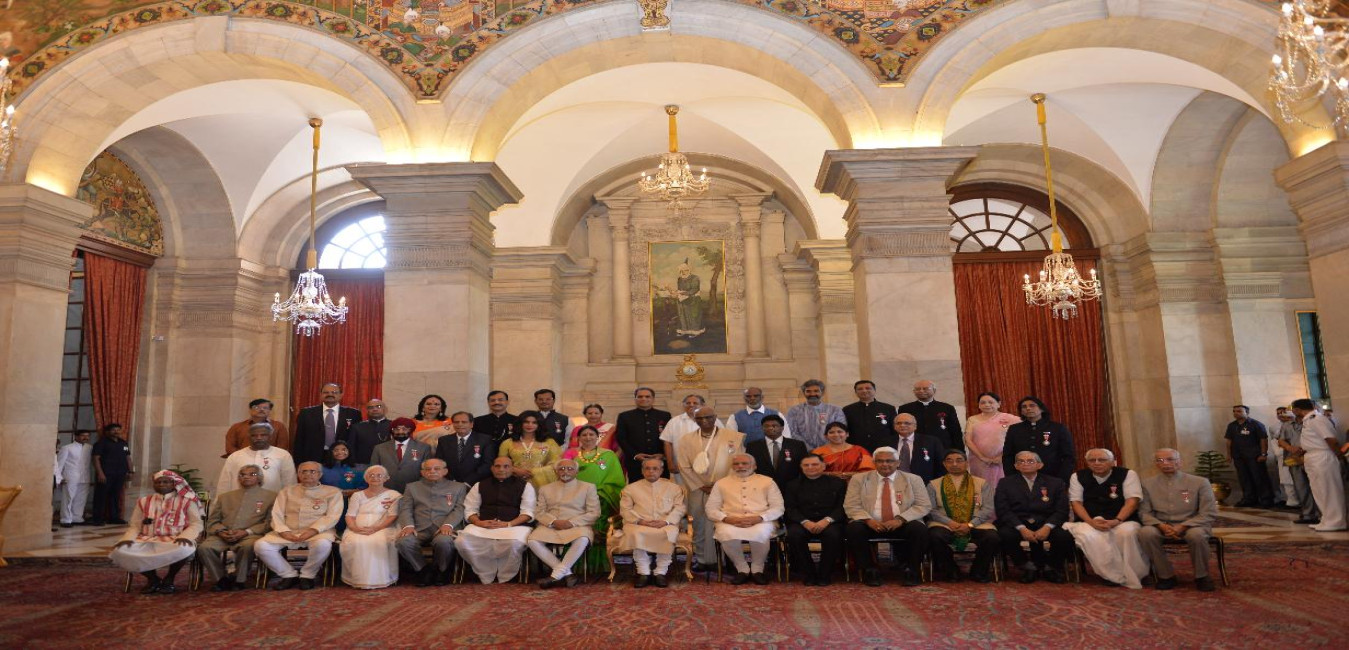 The President of India, Shri Pranab Mukherjee with recipients of Padma Awards, at Civil Investiture Ceremony II, at Rashtrapati Bhavan on April 12, 2016.