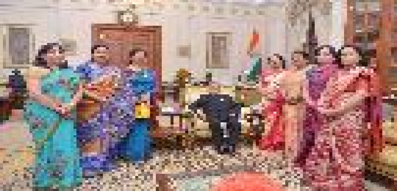 The President of India, Shri Pranab Mukherjee meeting with Smt. Vaibhawari Sarkar, at Rashtrapati Bhavan on April 07, 2016.