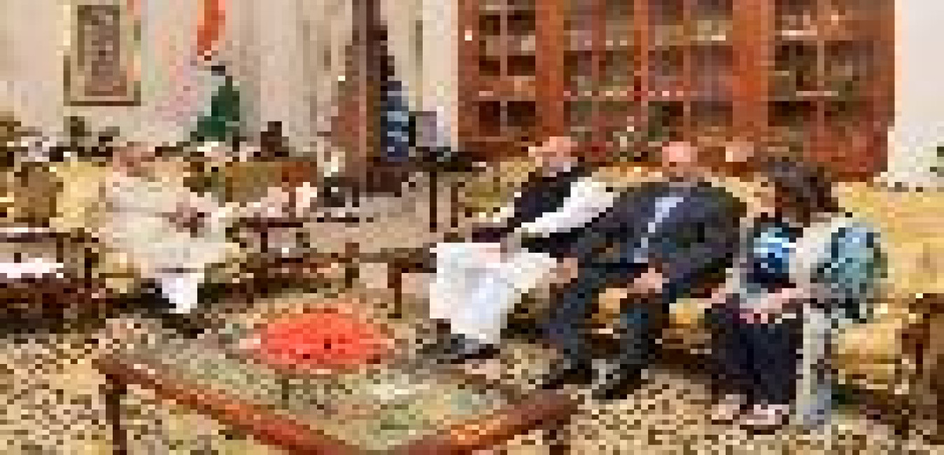 The President of India, Shri Pranab Mukherjee meeting with Prof. Partha Chatterjee, Author, Journalist & Senior Special Correspondent, Anandabazar Patrika alongwith his wife Smt. M. Chatterjee and daughter-in-law Smt. G. Chatterjee, at Rashtrapati Bhavan on April 08, 2016.