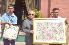 The President of India, Shri Pranab Mukherjee meeting with Shri Suman Chattopadhyay along with his daughter Ms. Tupur Chattopadhyay, at Rashtrapati Bhavan on April 10, 2016.