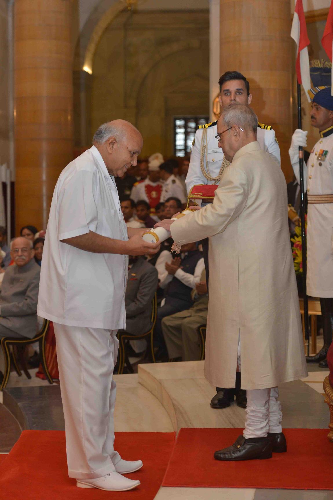 The President of India, Shri Pranab Mukherjee presenting the Padma Vibhushan awards, at Civil Investiture Ceremony II, at Rashtrapati Bhavan on April 12, 2016.