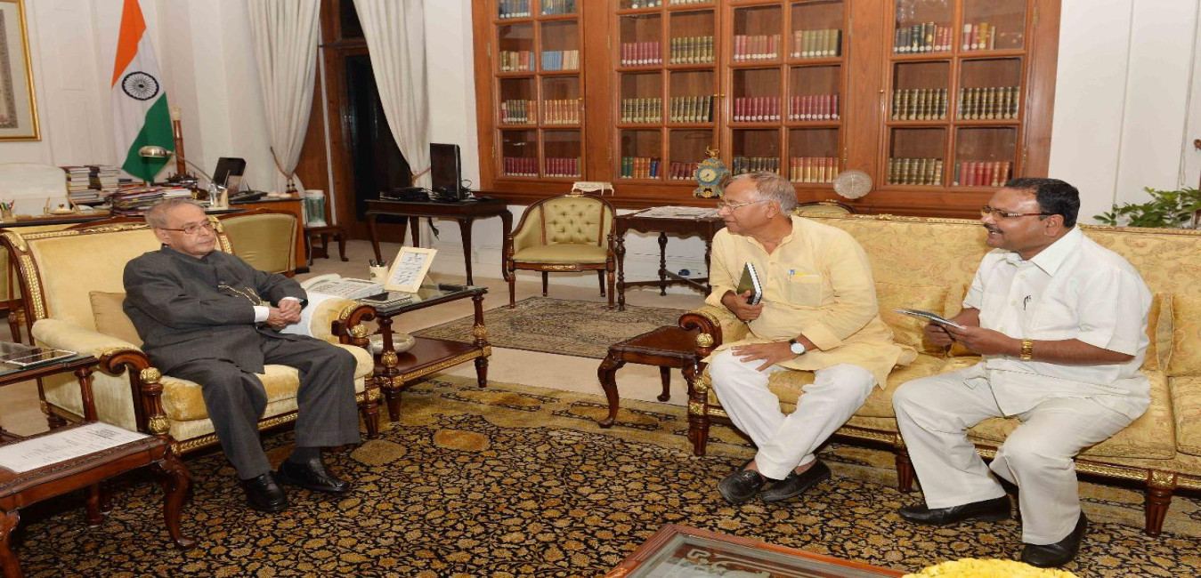 The President of India, Shri Pranab Mukherjee meeting with Shri J.D. Seelam, MP (RS), at Rashtrapati Bhavan on March 08, 2016.