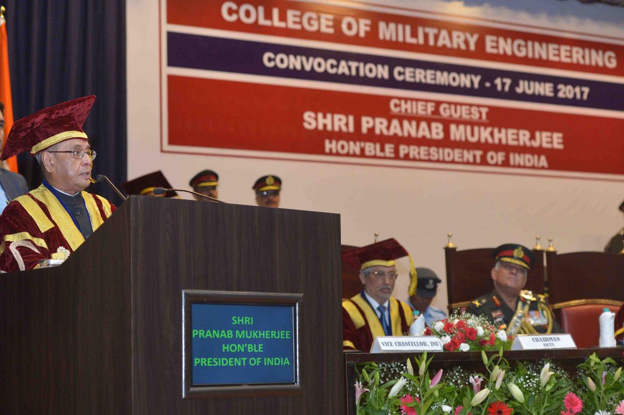 The President of India, Shri Pranab Mukherjee gracing the Convocation Ceremony of the passing out Engineering Graduate Courses of the College of Military Engineering, at Pune, in Maharashtra on June 17, 2017.