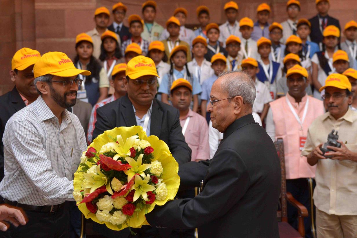 The President of India, Shri Pranab Mukherjee in Group Photograph with the winning students of the Lokmat Connect's Project 'Sanskarache Moti' from Maharashtra, at Rashtrapati Bhavan on June 21, 2017.