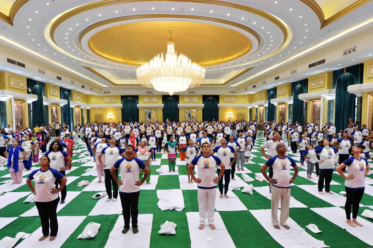 The President of India, Shri Pranab Mukherjee inaugurating the mass yoga demonstration to commemorate the 3rd International Yoga Day, at Rashtrapati Bhavan on June 21, 2017.