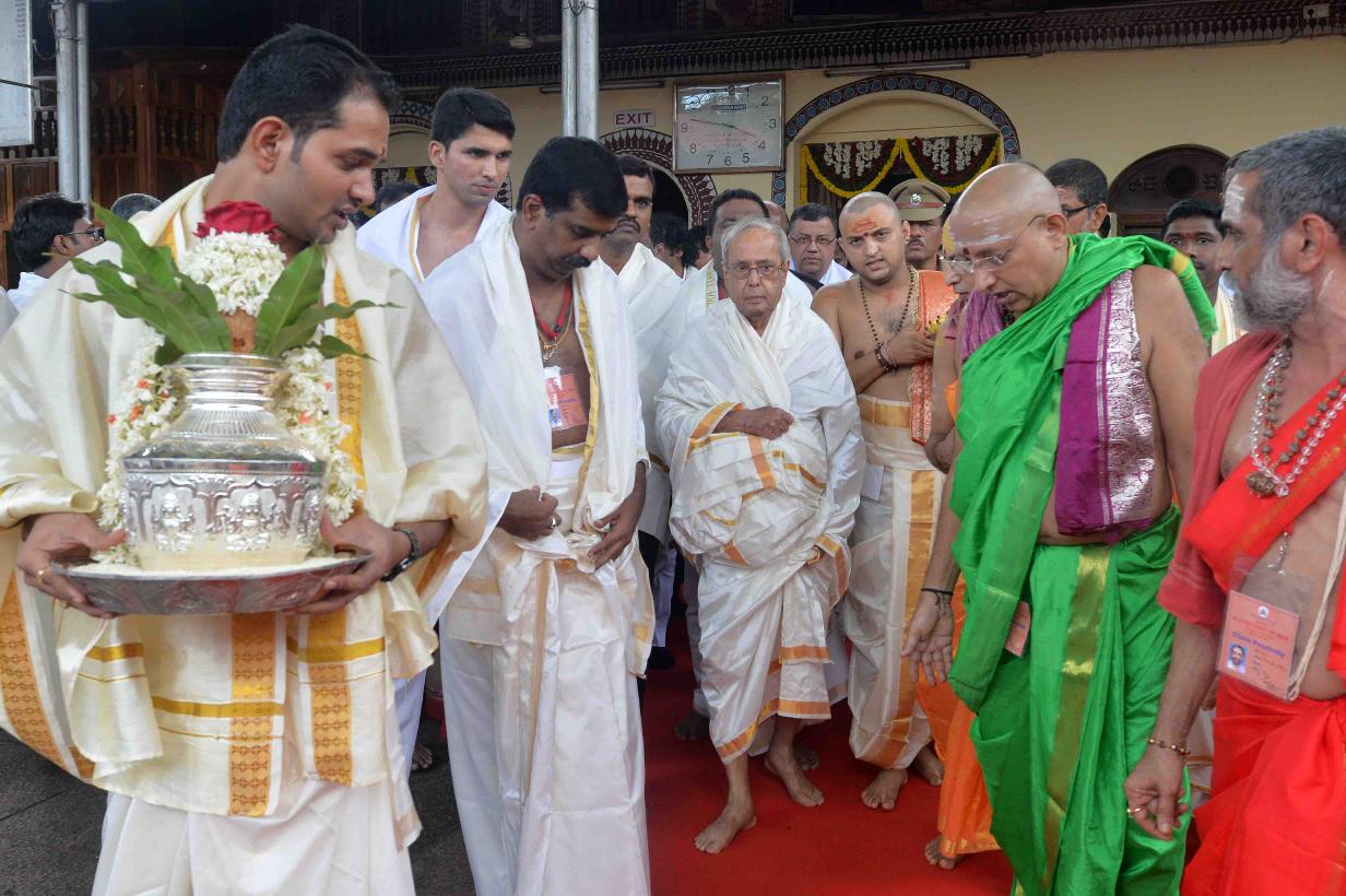 The President of India, Shri Pranab Mukherjee visiting the Sri Krishna Temple, at Udupi, in Karnataka on June 18, 2017.