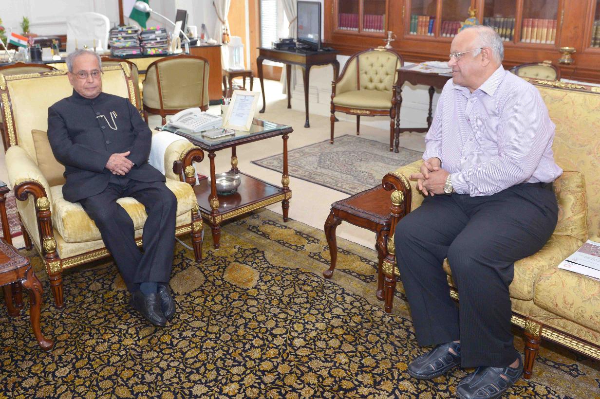 The President of India, Shri Pranab Mukherjee meeting with Shri S.S. Rana, Retd. Director General (Customs), CBEC, Ministry of Finance, at Rashtrapati Bhavan on June 21, 2017.