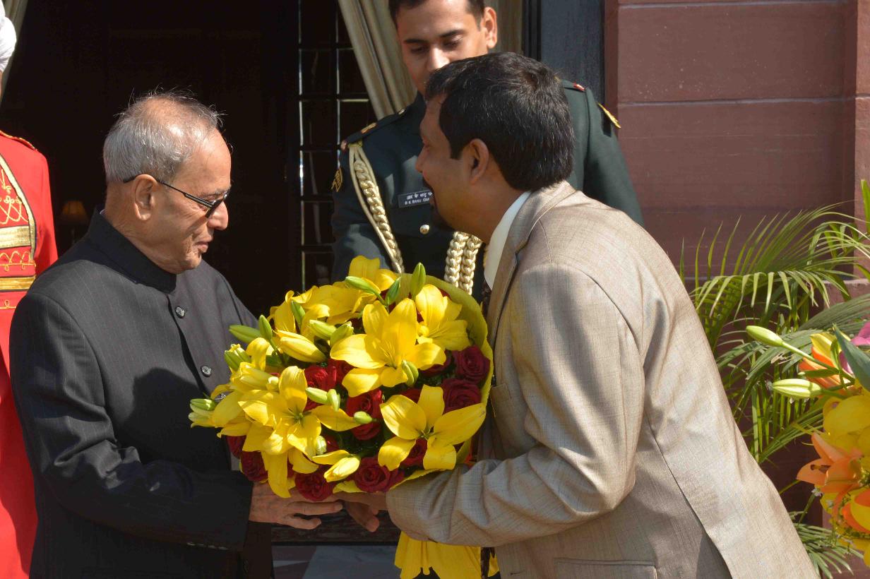 The President of India, Shri Pranab Mukherjee meeting with Shri Salam Azad, at Rashtrapati Bhavan on February 08, 2016.