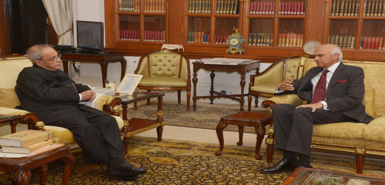The President of India, Shri Pranab Mukherjee meeting with Shri Ranjan Mathai, Former High Commissioner India to United Kingdom, at Rashtrapati Bhavan on January 14, 2016.