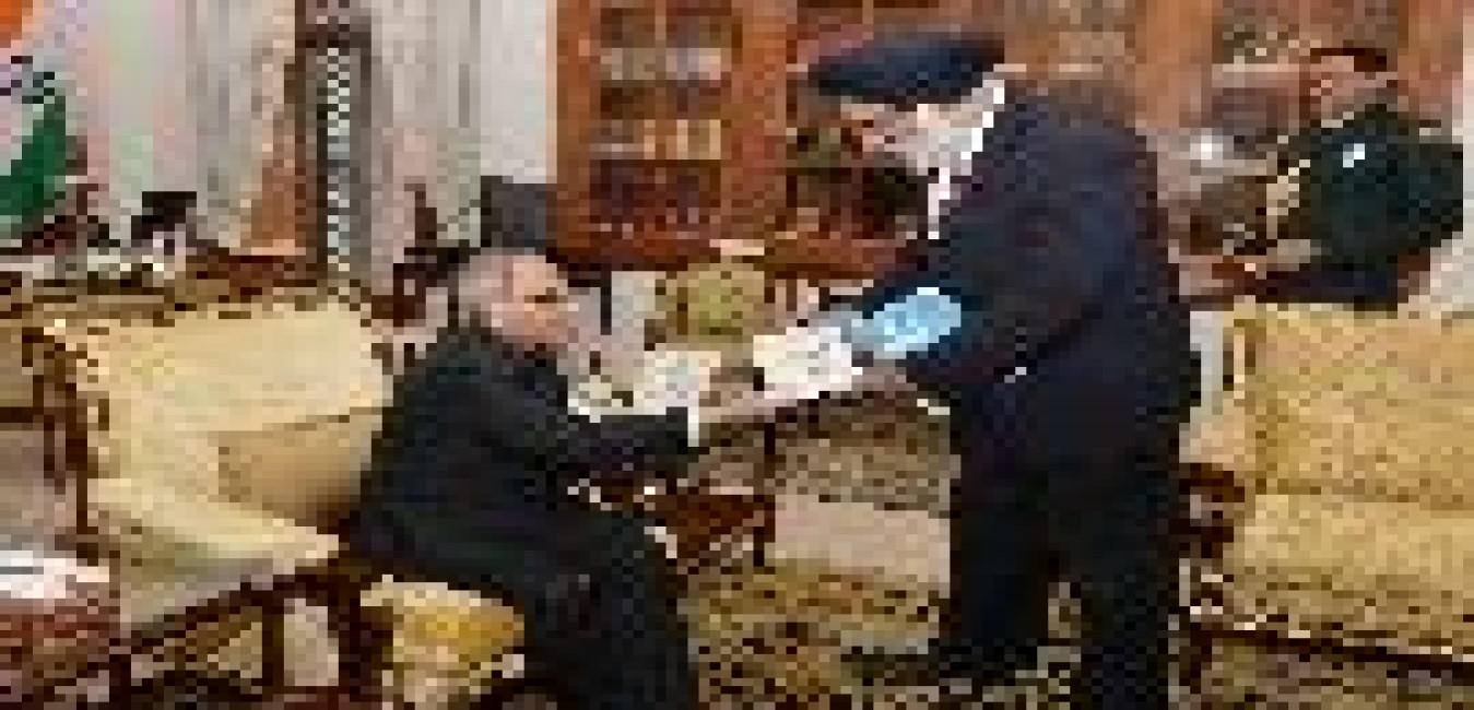 The President of India, Shri Pranab Mukherjee meeting with Dr. K.K. Paul, Governor of Uttarakhand, at Rashtrapati Bhavan on January 16, 2016.