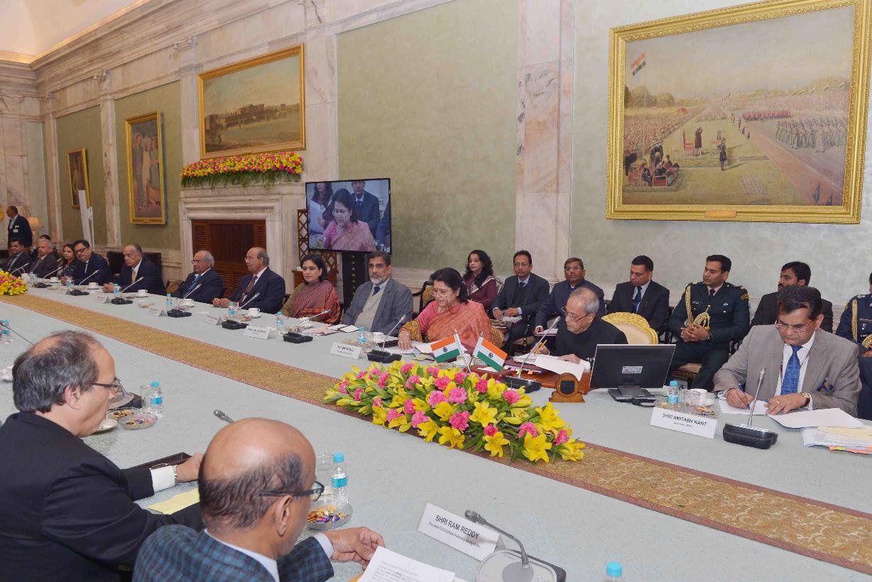 The President of India, Shri Pranab Mukherjee interacting with leading Silicon Valley Entrepreneurs, Technologists and Venture Capitalists, at Rashtrapati Bhavan on January 15, 2016.