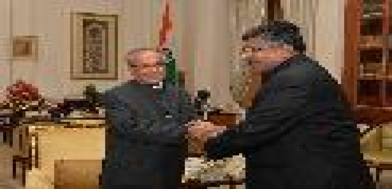 The President of India, Shri Pranab Mukherjee being greeted by the Governor of Uttarakhand, Dr. K.K. Paul, on the occasion of his 80th birthday, at Rashtrapati Bhavan on December 11, 2015 .