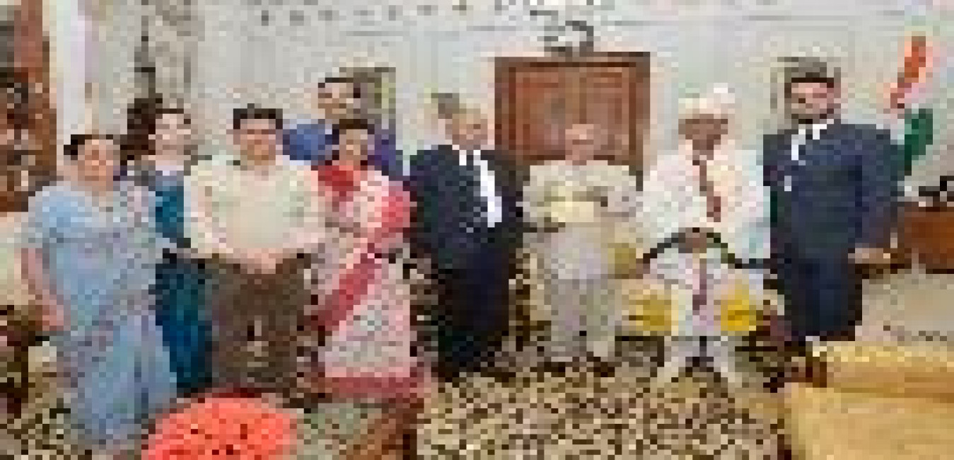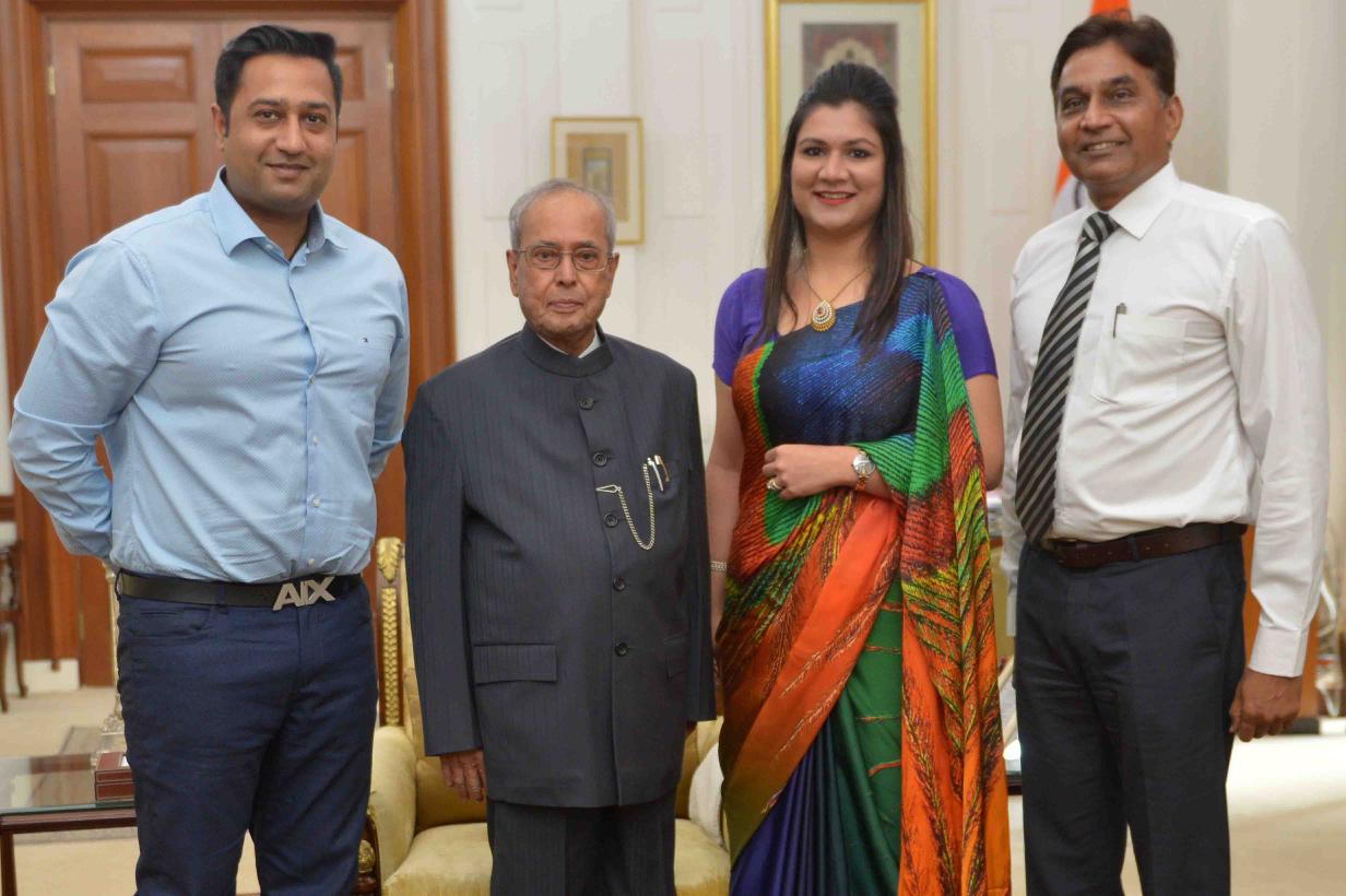 The President of India, Shri Pranab Mukherjee meeting with Shri Sunil Garg, Joint CP (Security), Delhi Police alongwith his family members, at Rashtrapati Bhavan on June 08, 2017.