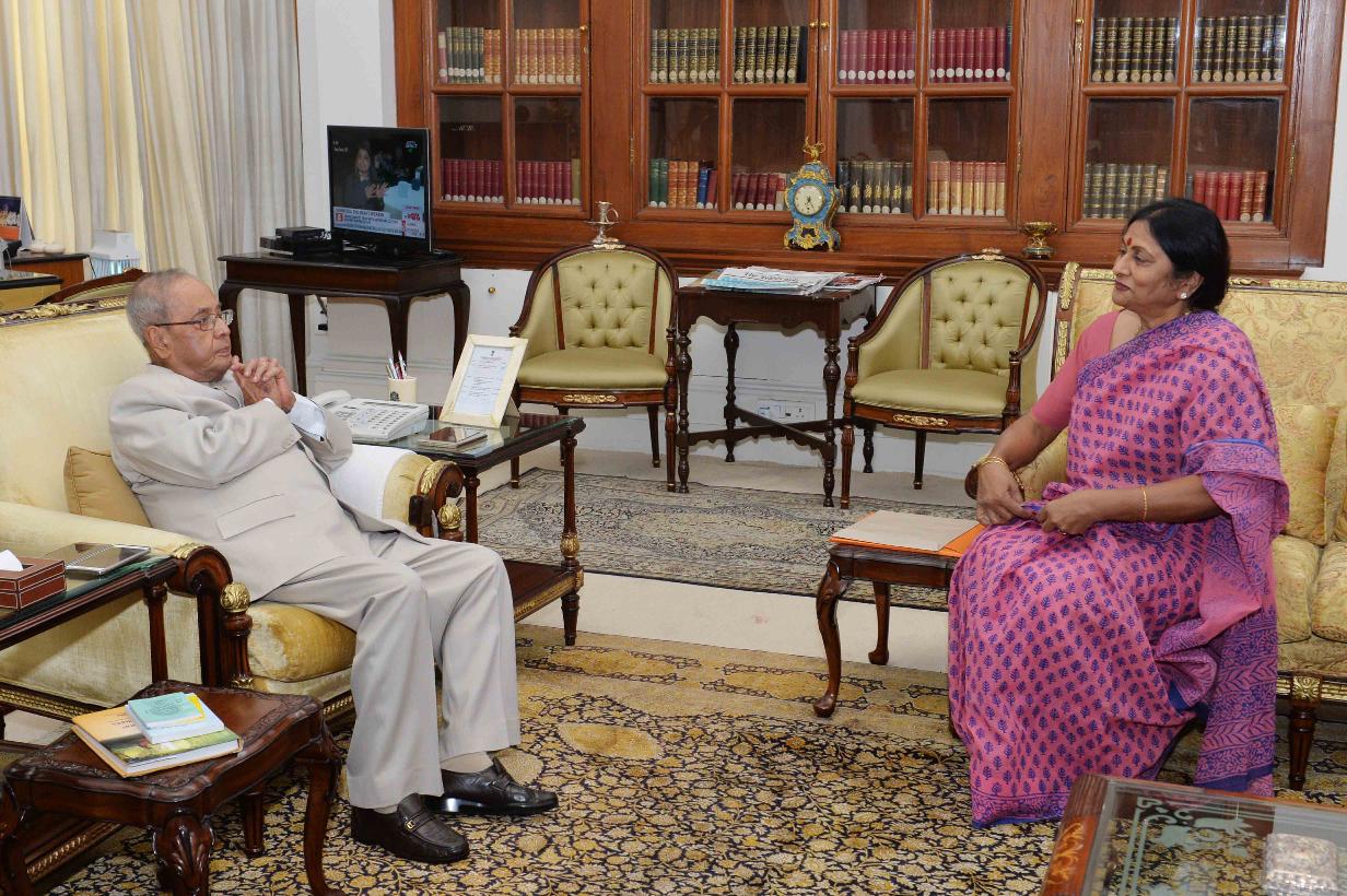 The President of India, Shri Pranab Mukherjee meeting with Smt. Gita Siddhartha, President Indian Council for Child Welfare, at Rashtrapati Bhavan on June 06, 2017.