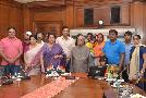 The President of India, Shri Pranab Mukherjee meeting with Shri Ajay Maken, former Union Minister alongwith Dr. Kiran Walia, former Minister, Delhi Govt. and teachers from Delhi University, at Rashtrapati Bhavan on June 09, 2017.