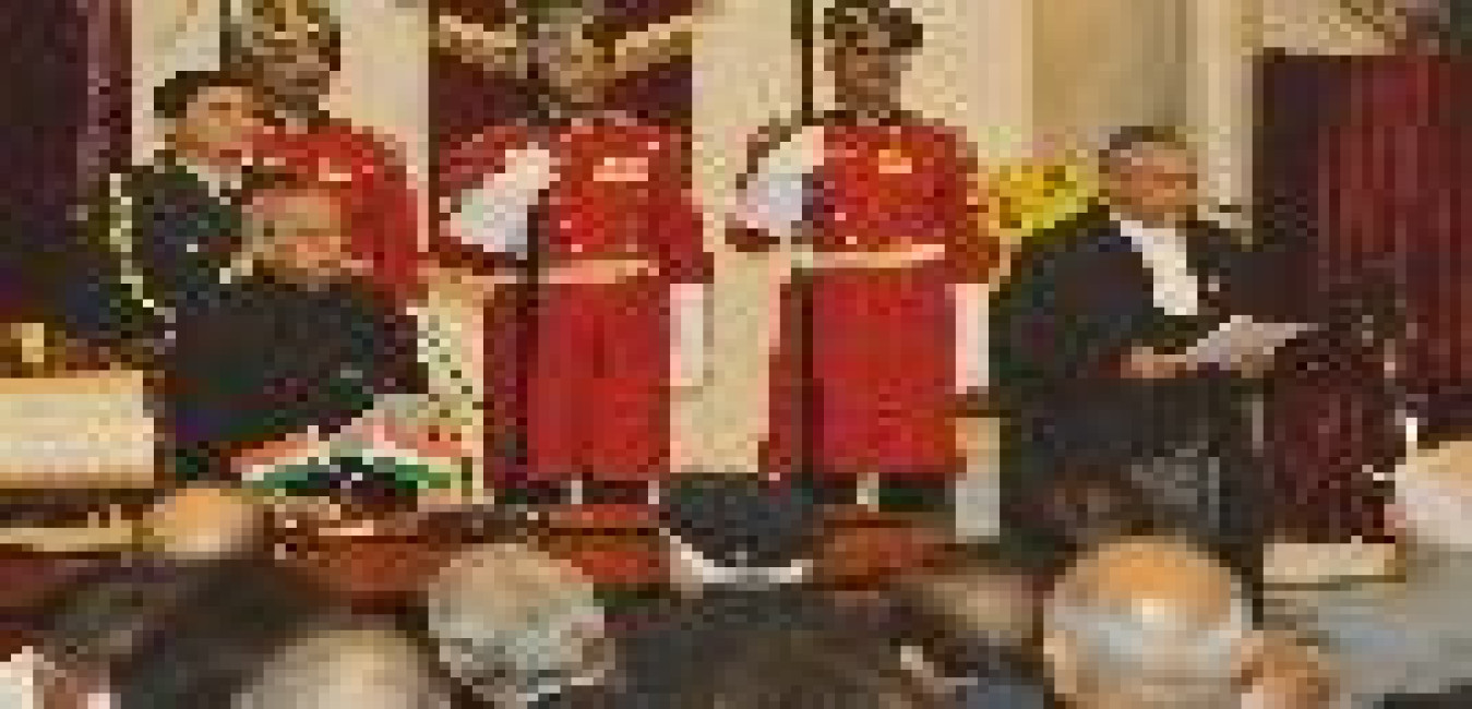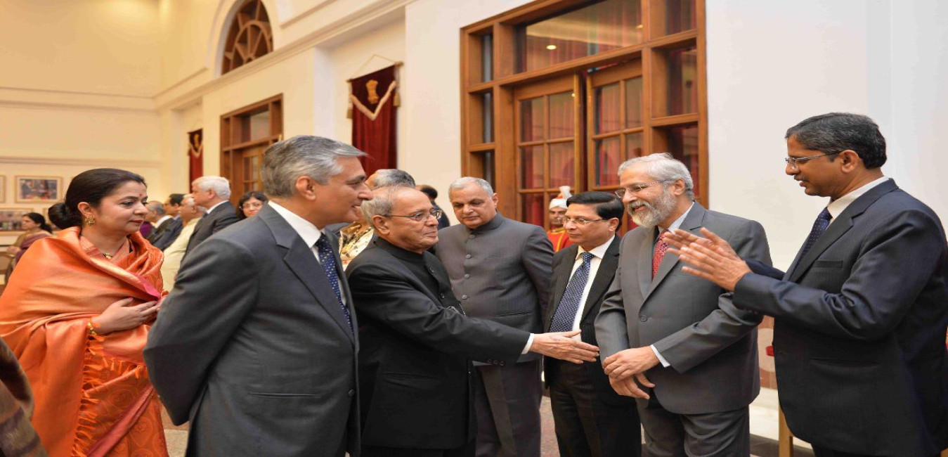 The President of India, Shri Pranab Mukherjee hosting a dinner to Shri Justice T.S. Thakur, Chief Justice of India and Shri Justice H.L. Dattu, former Chief Justice of India, at Rashtrapati Bhavan Cultural Centre on December 03, 2015.