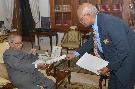 The President of India, Shri Pranab Mukherjee meeting with Shri Justice P. Sathasivam, Governor of Kerala, at Rashtrapati Bhavan on December 03, 2015.