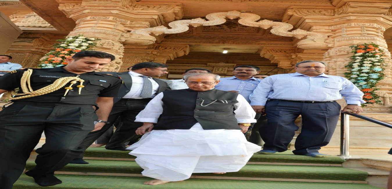 The President of India, Shri Pranab Mukherjee visiting Somnath Temple in Gujarat on December 01, 2015.