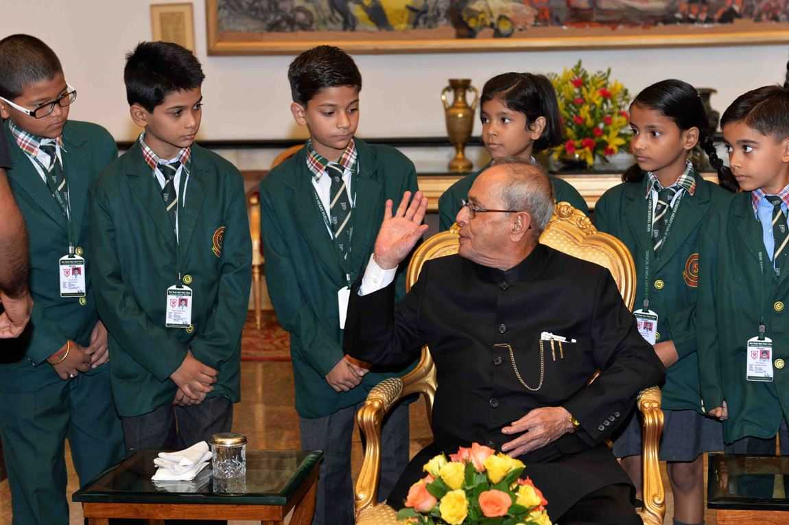 The President of India, Shri Pranab Mukherjee meeting with the students and staff from various school/institutions on the occasion of Children s Day, at Rashtrapati Bhavan on November 14, 2015.