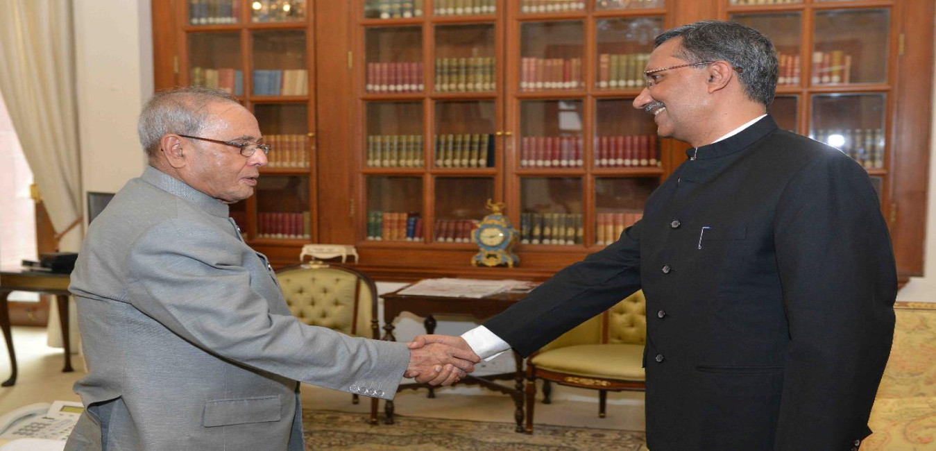 The President of India, Shri Pranab Mukherjee meeting with Shri Pankaj Saran, High Commissioner of India to Bangladesh, at Rashtrapati Bhavan on November 07, 2015.