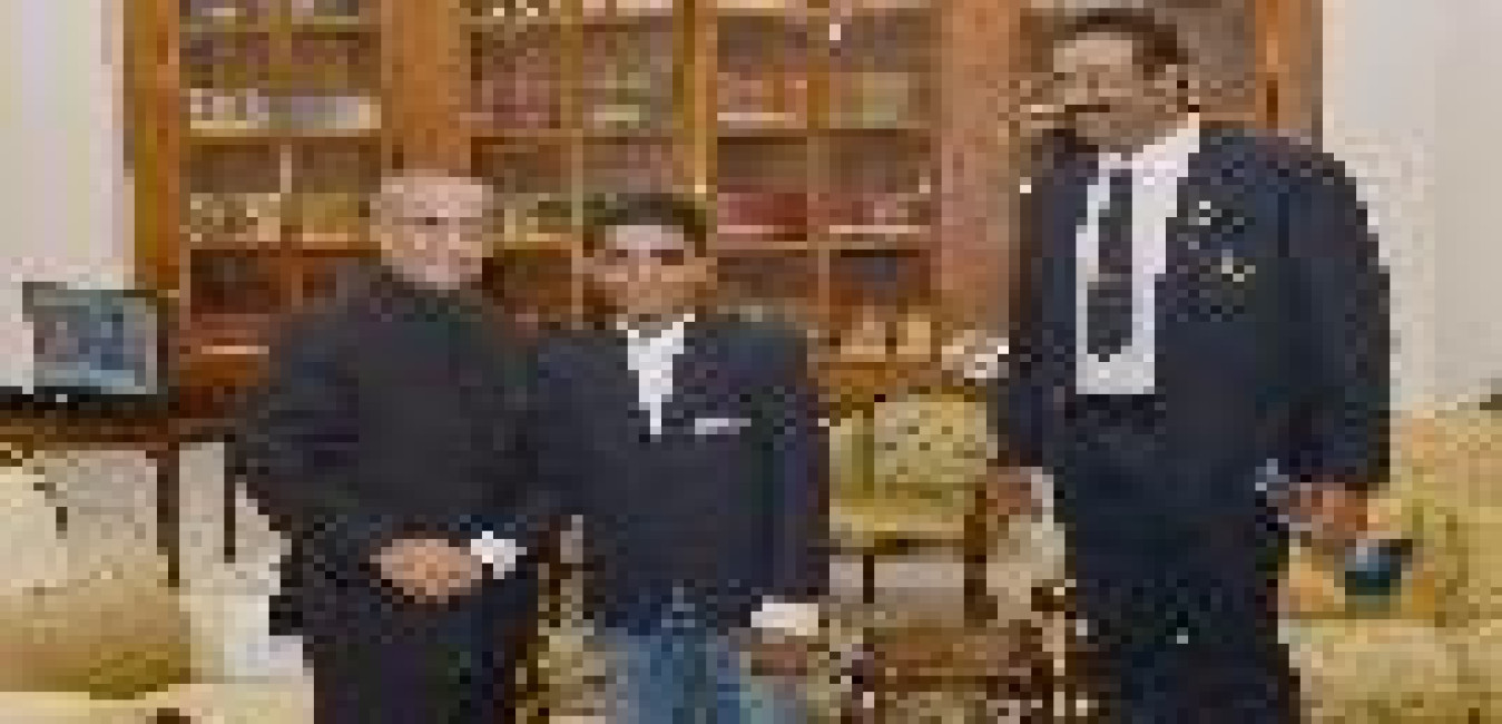 The President of India, Shri Pranab Mukherjee meeting with Shri Amit Luthra, Founder & Chief Executive Officer, The Golf Foundation alongwith Master Shubham Jaglan, winner of the Junior World Golf Tournament, at Rashtrapati Bhavan, in New Delhi on November 09, 2015.