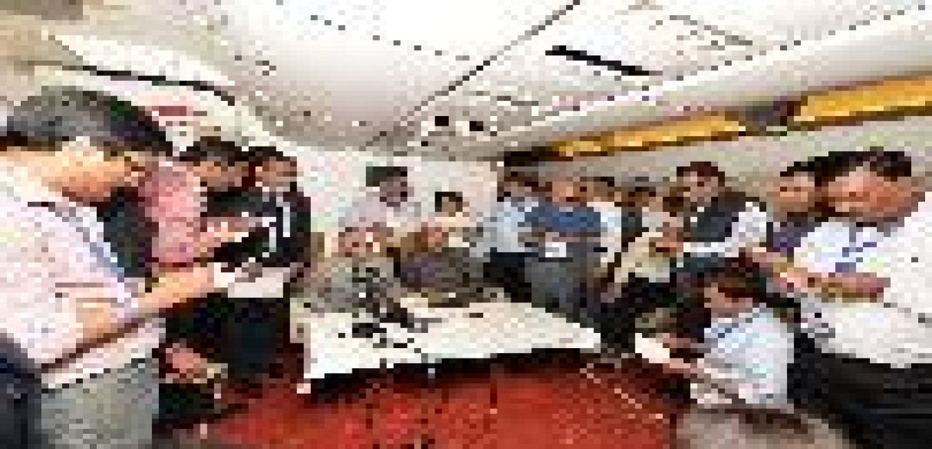 The President of India, Shri Pranab Mukherjee interacting with the media delegation onboard after his State visit of Jordan, Palestine and Israel on October 15, 2015.