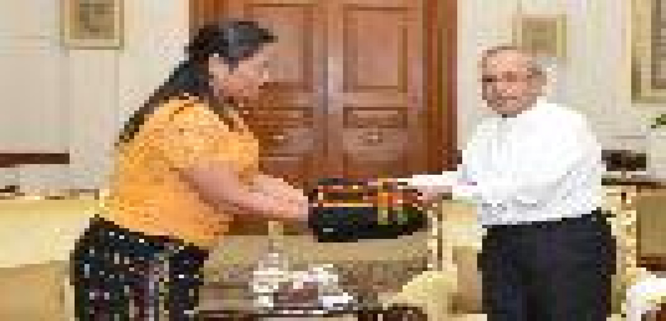 The President of India, Shri Pranab Mukherjee meeting with Shri Namo Narayan Meena, former Minister of State for Finance and Shri Ramkesh Meena, Ex-MLA, Rajasthan, at Rashtrapati Bhavan, in New Delhi on September 22, 2015.