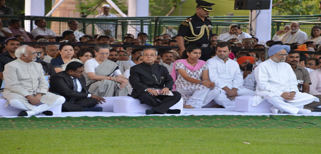 The President of India, Shri Pranab Mukherjee paying floral tributes at the Samadhi of the former Prime Minister of India, Late Shri Rajiv Gandhi on the occasion of his Birth Anniversary, in Delhi on August 20, 2015.