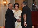 The President of India, Shri Pranab Mukherjee meeting with Smt. & Shri ESL Narasimhan, Governor of Andhra Pradesh & Telangana, at Rashtrapati Bhavan, in New Delhi on August 20, 2015.