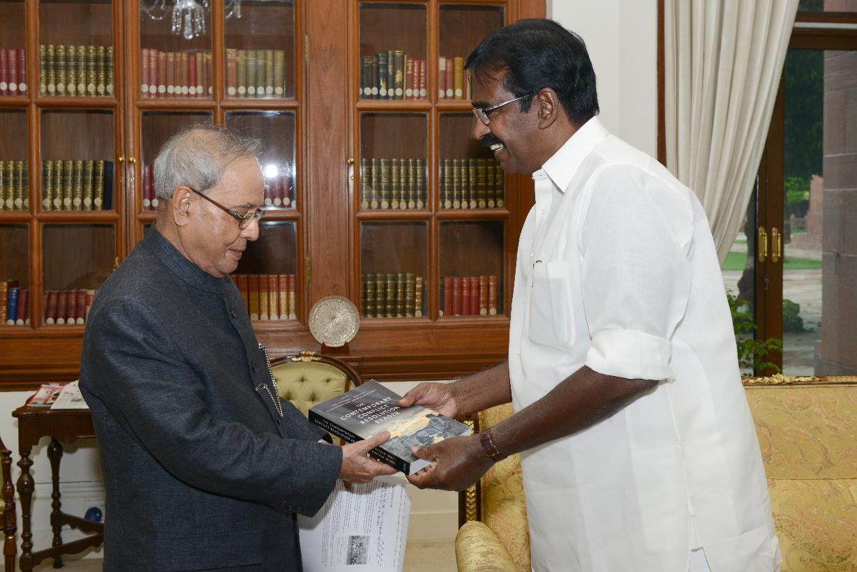 The President of India, Shri Pranab Mukherjee meeting with Shri S.S. Palanimanickam, former Union Minister of State for Finance, at Rashtrapati Bhavan, in New Delhi on August 06, 2015.