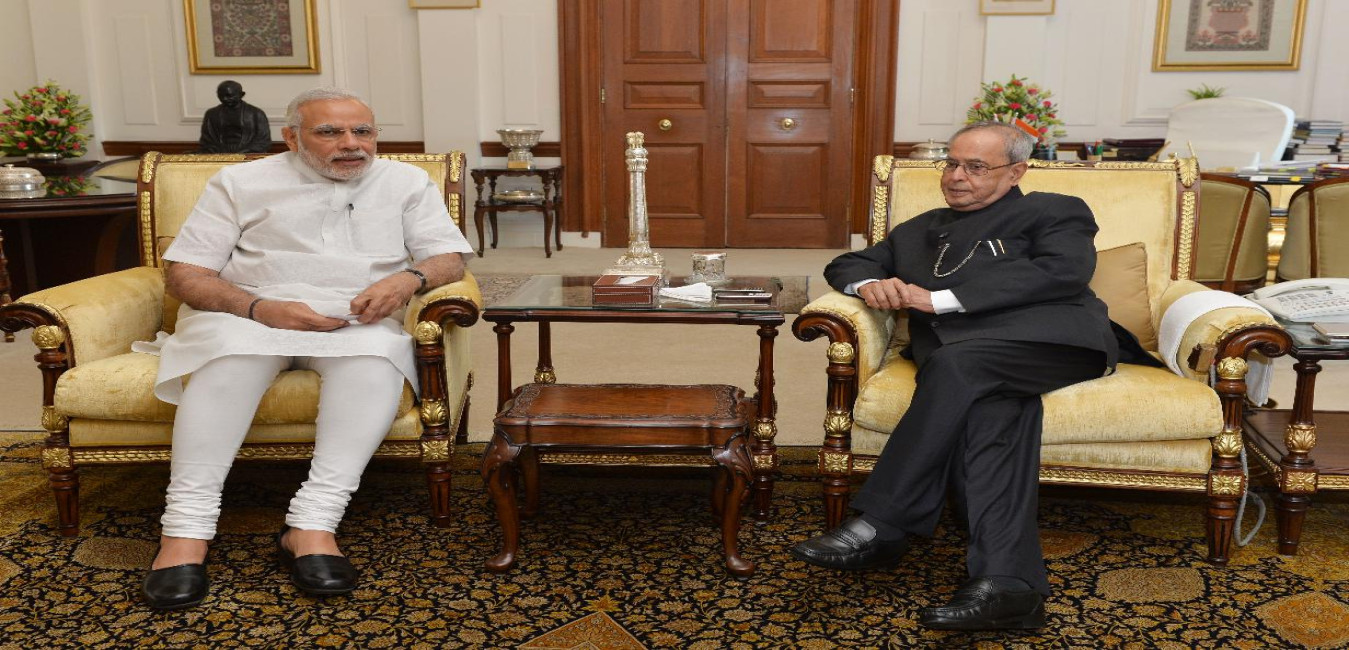 The President of India, Shri Pranab Mukherjee meeting the Prime Minister of India, Shri Narendra Modi, at Rashtrapati Bhavan, in New Delhi on July 21, 2015.