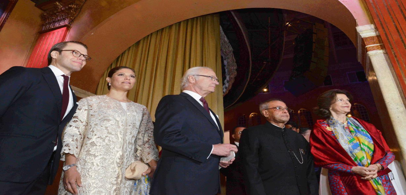 The President of India, Shri Pranab Mukherjee at the Banquet hosted by their Majesties H.M. King Carl XVI Gustf and Queen, at Royal Palace, at Stockholm, in Sweden on June 01, 2015. Princess Victoria, His Royal Highness Prince Carl Philip and Ms. Sofia Hellqvist also attended the Banquet.