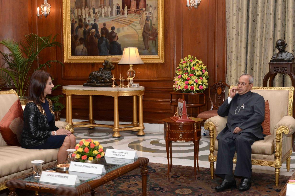 The Ambassador of the Republic of Costa Rica, Her Excellency Ms. Mariela Cruz Alvarez presenting her credentials to the President of India, Shri Pranab Mukherjee, at Rashtrapati Bhavan on May 17, 2017.