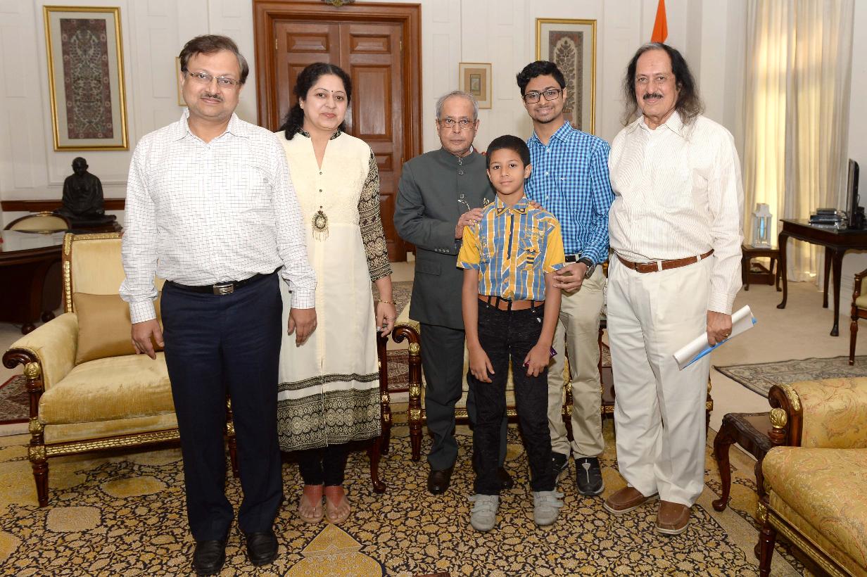 The President of India, Shri Pranab Mukherjee meeting with Smt. Sarmishtha Nag and Shri Abhijit Nag from Pune, at Rashtrapati Bhavan on May 14, 2017.