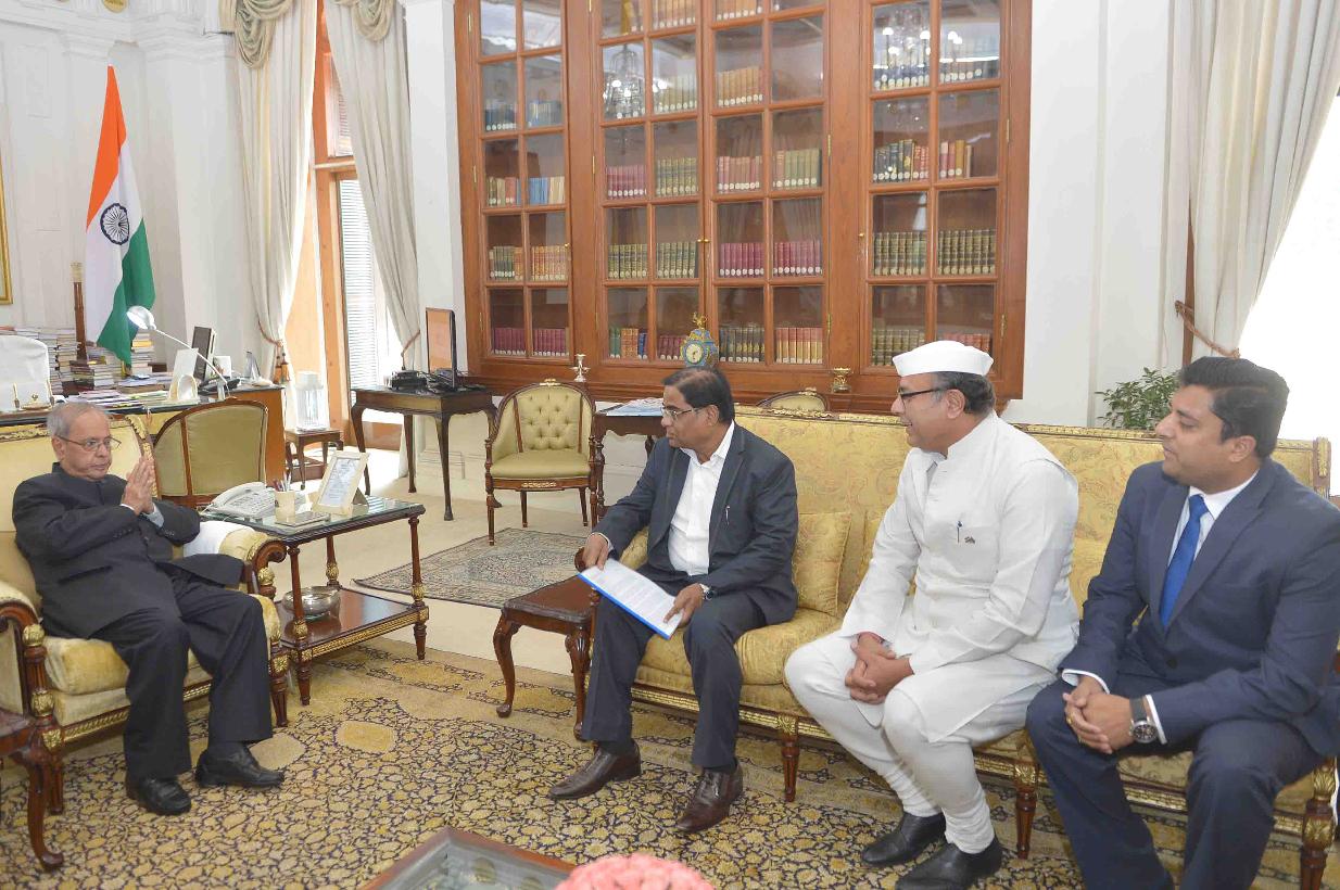 The President of India, Shri Pranab Mukherjee meeting with Shri Robin Roy, Shri Ashok Kapoor and Shri Saurabh Agarwal, at Rashtrapati Bhavan on May 16, 2017.