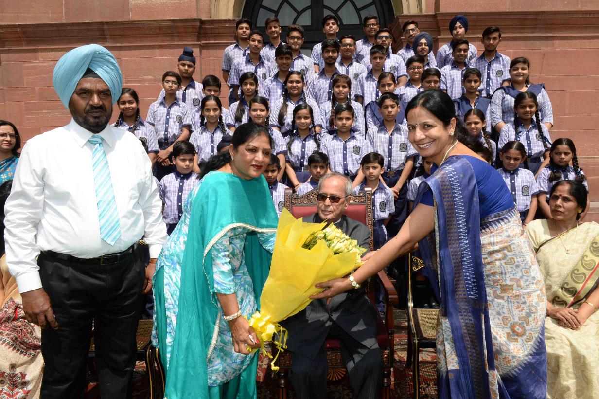 The President of India, Shri Pranab Mukherjee in group photographs with the students and teachers from Mount View Public School, Mohali, at Rashtrapati Bhavan on May 17, 2017.