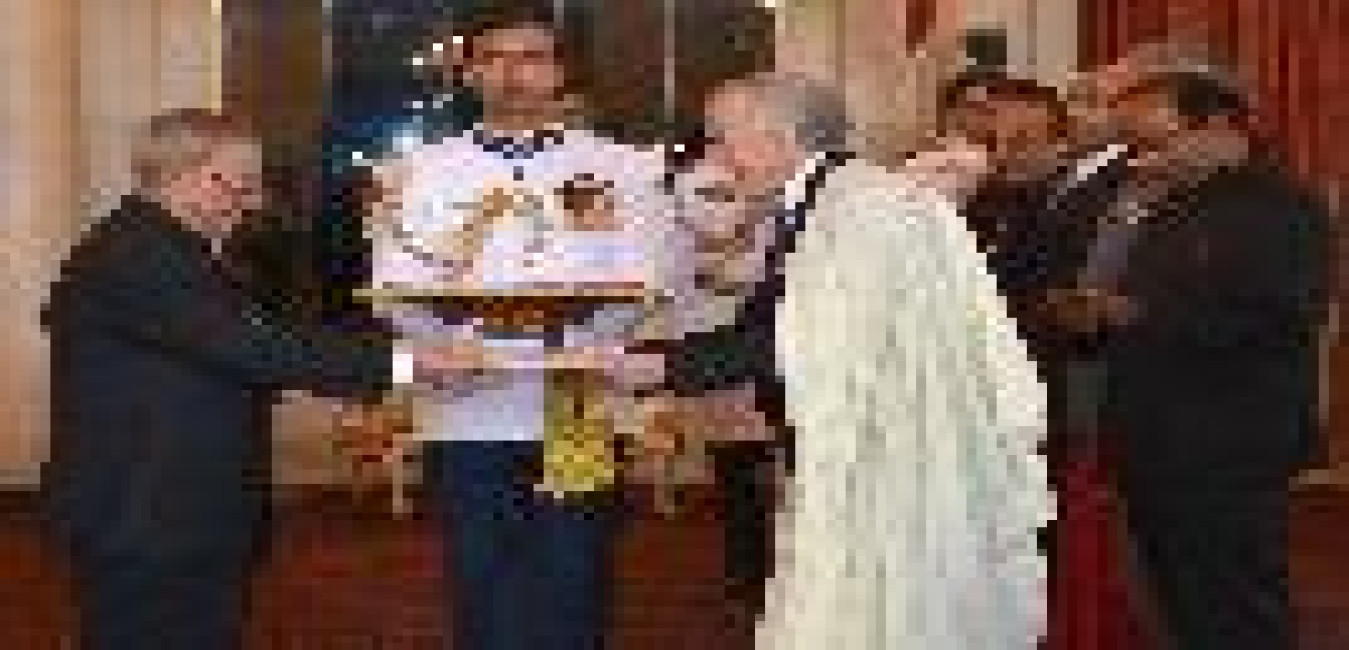The Ambassador designate of the Republic of the Marshall Islands, HE Mr Thomas D Kijiner presenting his credentials to the President of India, Shri Pranab Mukherjee, at Rashtrapati Bhavan, in New Delhi on March 18, 2015.