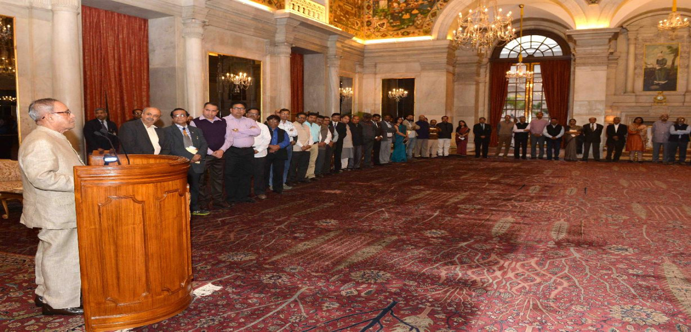 The President of India, Shri Pranab Mukherjee meeting the Members of Press Association, at Rashtrapati Bhavan, in New Delhi on March 11, 2015.