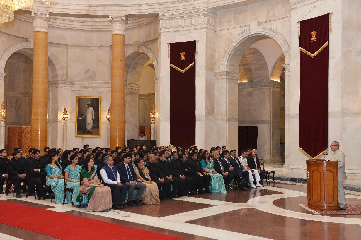 The President of India, Shri Pranab Mukherjee interacting with the Officer Trainees of 68th Batch of Indian Revenue Service from National Academy of Direct Taxes (NADT), Nagpur, at Rashtrapati Bhavan, in New Delhi on March 13, 2015.