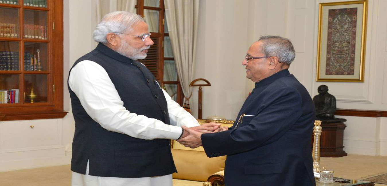 The President of India, Shri Pranab Mukherjee meeting with the Prime Minister of India, Shri Narendra Modi on the occasion of his Birthday at Rashtrapati Bhavan in New Delhi on Dec 11, 2014