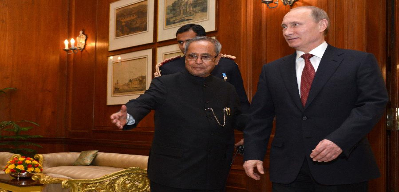 The President of the Russian Federation, HE Mr Vladimir V Putin calling on the President of India, Shri Pranab Mukherjee at Rashtrapati Bhavan in New Delhi on Dec 11, 2014