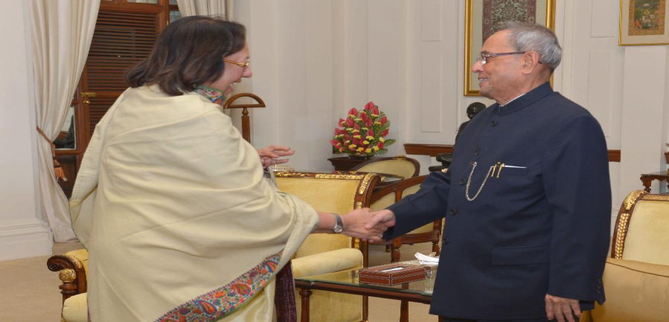 The President of India, Shri Pranab Mukherjee meeting with the Minister for Minority Affairs, Dr Najma Heptulla on the occasion of his Birthday at Rashtrapati Bhavan in New Delhi on Dec 11, 2014