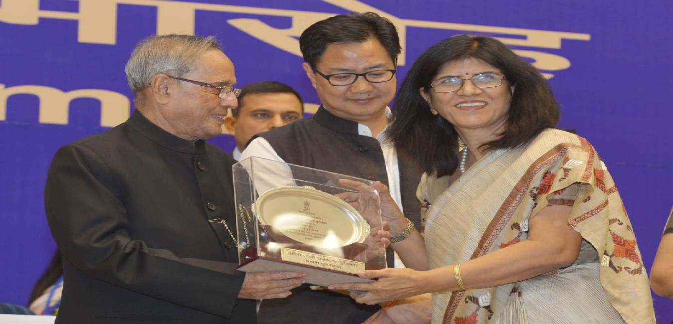 The President of India, Shri Pranab Mukherjee presenting the Awards Instituted by the Rajbhasha Vibhag of Ministry of Home Affairs for the Year 2013-14 at the Rajbhasha Samaroh 2014 at Vigyan Bhavan in New Delhi on Nov 15, 2014