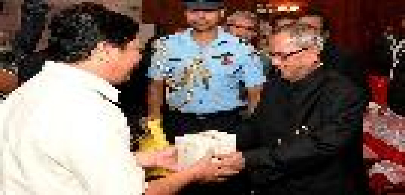 The President of India, Shri Pranab Mukherjee being received at Hanoi Airport during his visit to the Socialist Republic of Vietnam in Vietnam on Sep 14, 2014