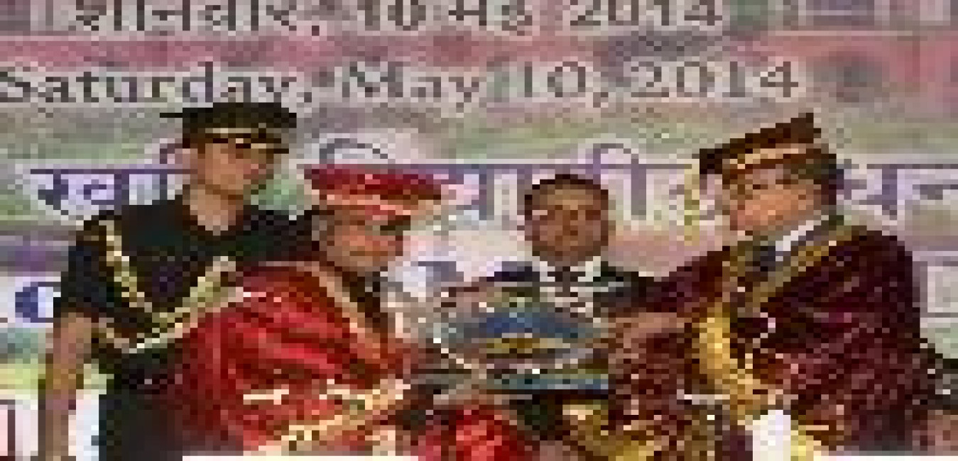The President of India, Shri Pranab Mukherjee conferring Honorary Degrees to Shri Rishang Keishing and Shri L Birendrakumar Singh during 14th Convocation of Manipur University at Canchipur in Imphal, Manipur, The President also went around an Innovation Exhibition after inauguration of it on April 29, 2014