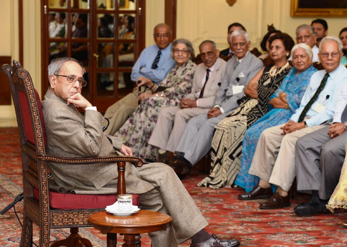 The President of India, Shri Pranab Mukherjee interacting with the Reunion of Former Aides-De-Camp (ADC) to the President of India at Rashtrapati Bhavan in New Delhi on May 04, 2014