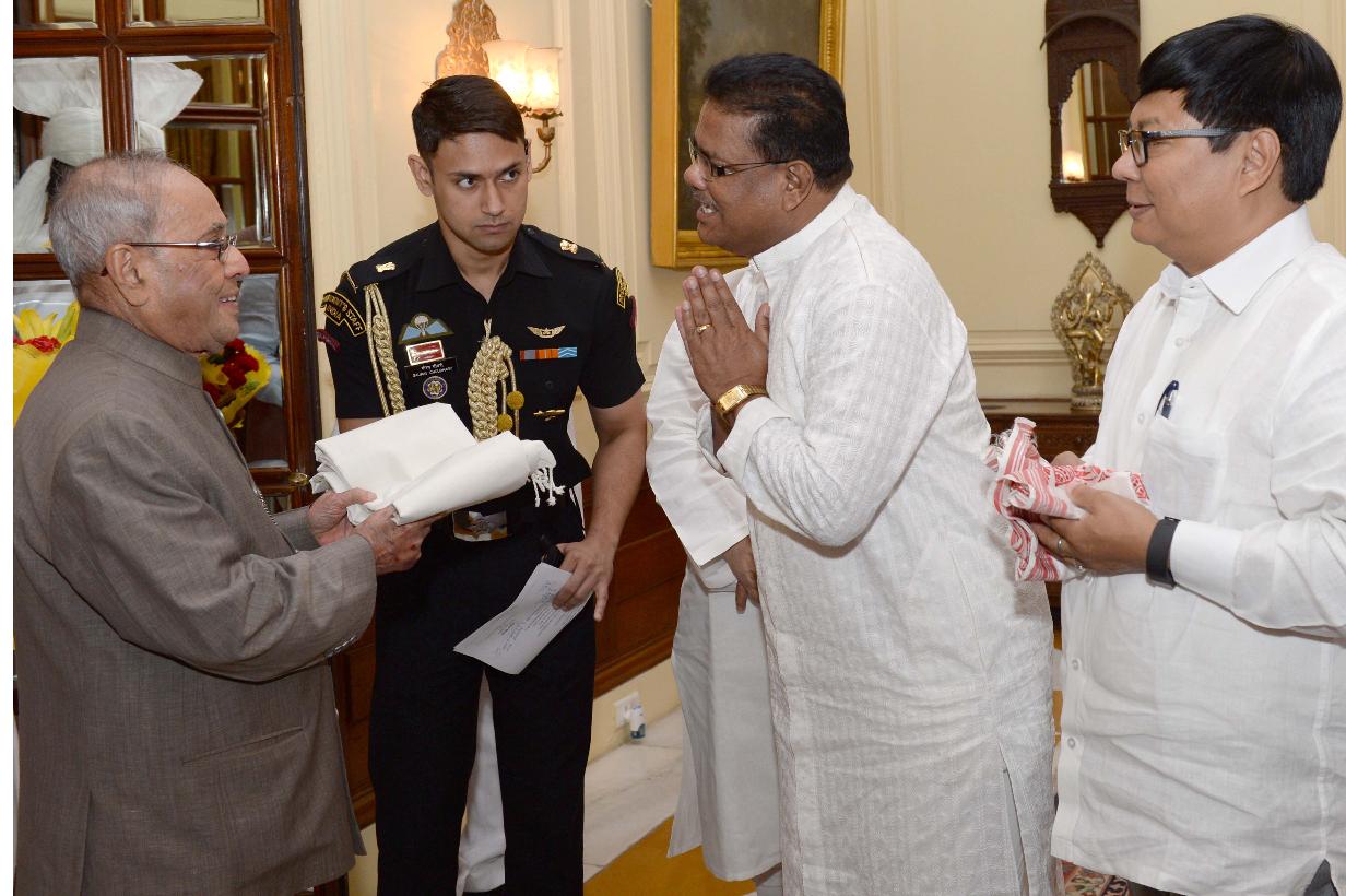 The President of India, Shri Pranab Mukherjee meeting with a delegation consisting of Congress MPs & MLAs from Assam and PCC Officer-bearers led by Shri Ripun Bora, MP (RS) & President, Assam Pradesh Congress Committee, at Rashtrapati Bhavan on May 06, 2017.