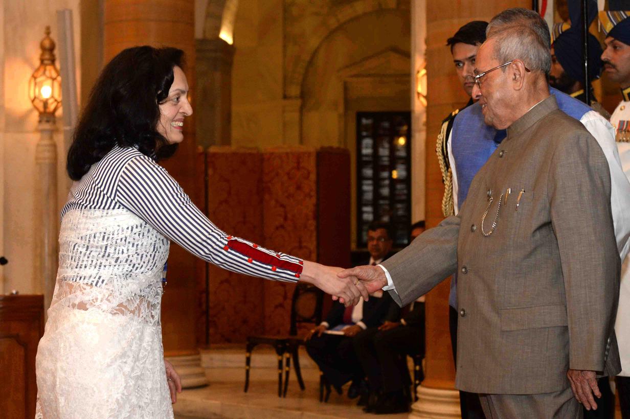 The President of India, Shri Pranab Mukherjee meeting with Smt. Rashmi Malik, Director, SPIC MACAY, at Rashtrapati Bhavan on May 08, 2017.