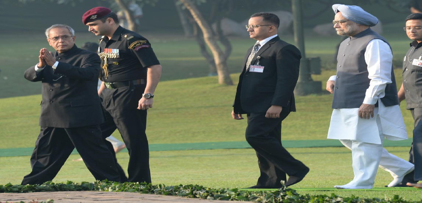 The President of India, Shri Pranab Mukherjee paying homage at the Samadhi of Former Prime Minister of India, Late Smt Indira Gandhi to Commemorate her 29th Death Anniversary at Shakti Sthal in New Delhi on Oct 31, 2013