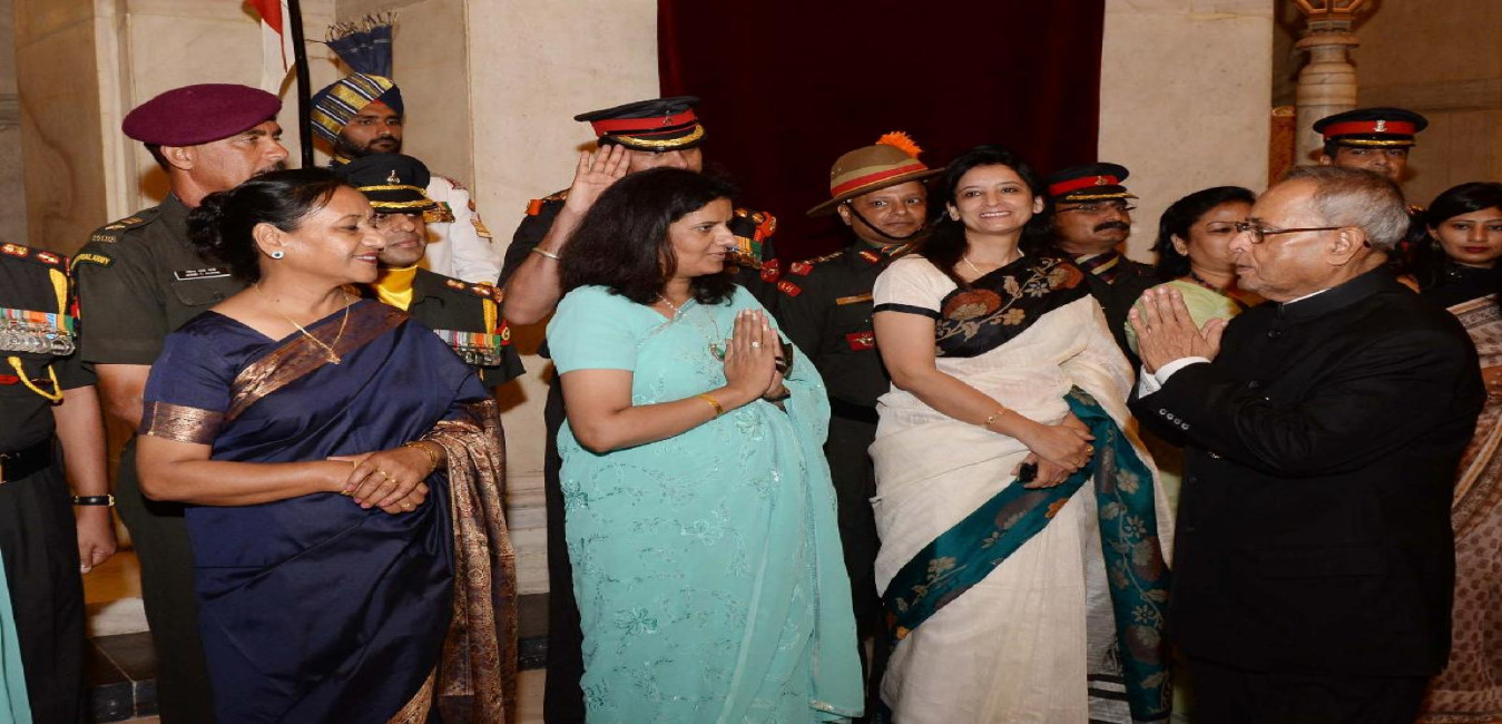 The President of India, Shri Pranab Mukherjee interacting with the Territorial Army Officers JCOs and other Ranks alongwith their Spouses at Darbar Hall of Rashtrapati Bhavan in New Delhi on Oct 10, 2013